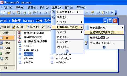 1、将单机版财务软件数据进行备份,会生成一个名为“sjbf.mdb”和“smwj.txt”文件,将“sjbf.mdb”文件用Access打开,如下图所示。打开时需要输入密码(mxrjjccwsjbf621115),进入Access后,选择“工具”—“数据库实用工具”—“压缩和修复数据库”进行压缩数据库。